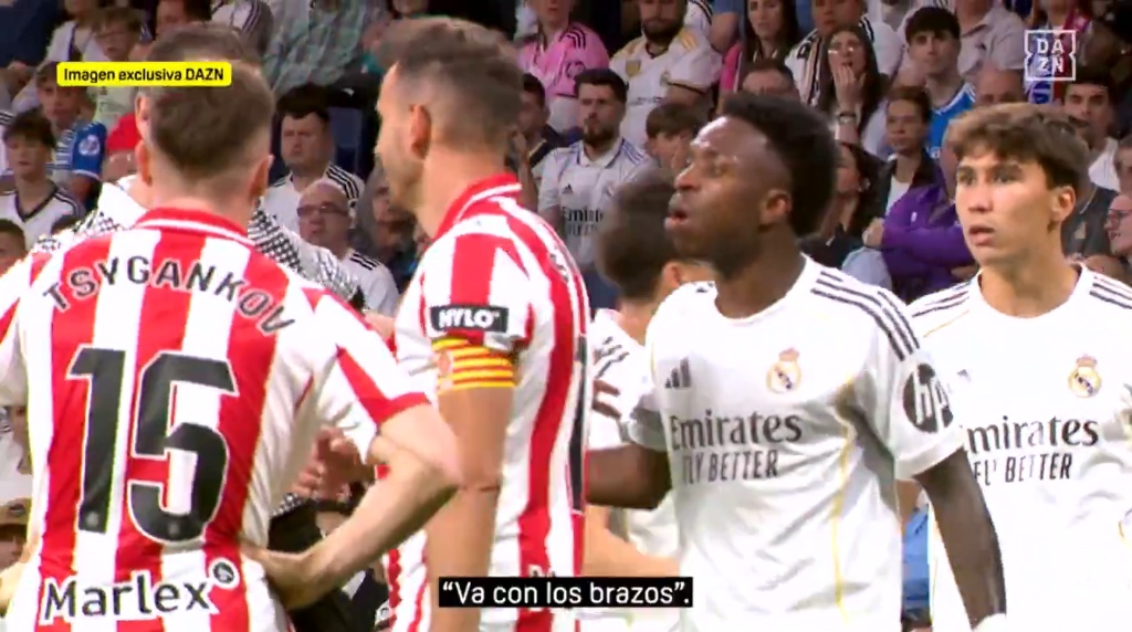 当时场上比分为1-1。转播镜头拍到,皇马球员不断向主裁施压,贡萨洛说道:“去看看吧,去看回放吧。”维尼修斯则表示表示:“他是张着手臂去的。”这次碰撞导致姆巴佩眉骨处被划伤,赛后他接受了3针缝合。DAZN解说在节目中表示,阿尔韦罗拉看到了这次肘击,也看到了姆巴佩流血和他的反应。