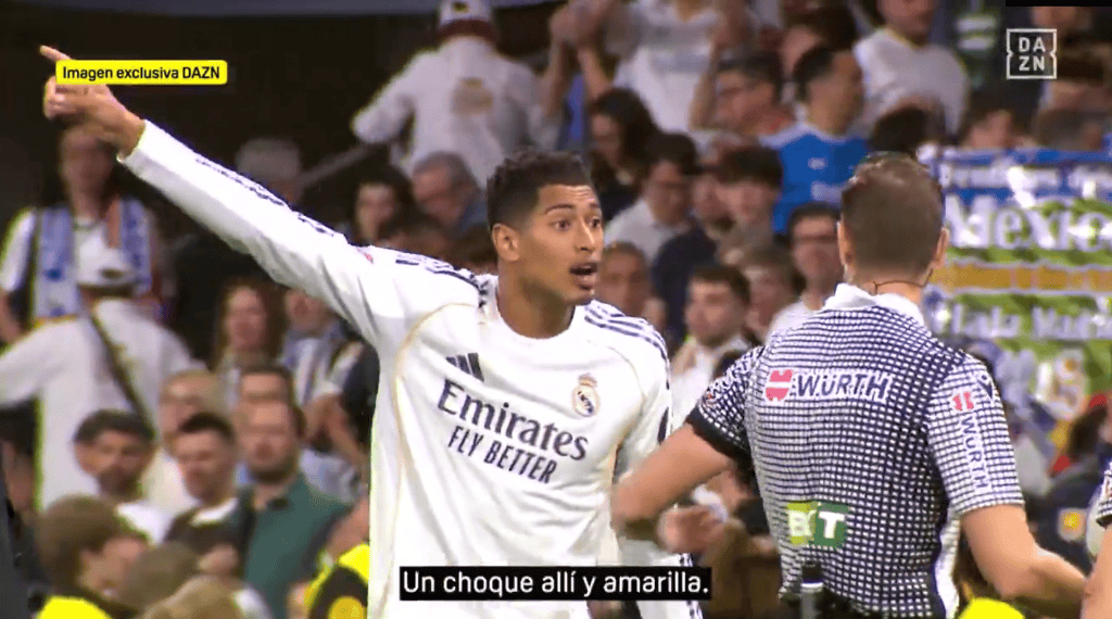 比赛结束后,贝林厄姆也前往裁判组讨要说法。转播收音显示,他在交涉时表示自己一直在和裁判沟通,并强调“我都说了,这里都出血了”,同时质疑类似的碰撞在其他情况下都可能吃牌,为什么这次却没有判罚。期间他还对裁判说道:“冷静一点,我们就是在说这个。”不过直到交流结束,贝林厄姆依然难掩不满,直言:“这怎么可能……”
